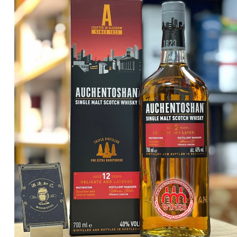 Một loại rượu whisky Single Malt Scotch với hương thơm đặc biệt của crème brulee xộc lên mũi với hương cam quýt và sau đó là vị thơm đặc trưng và vị lá xanh mà bạn mong đợi từ Auchentoshan.