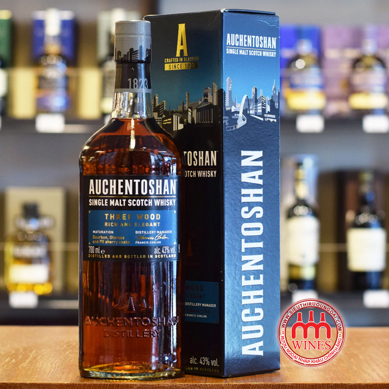 Auchentoshan Three Wood không công bố số năm tuổi rượu (NAS), được đóng chai ở mức 43% ABV. Đây là sản phẩm dành cho thị trường miễn thuế du lịch toàn cầu.