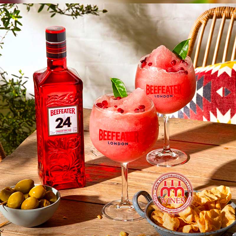 Beefeater 24 gin là sự pha trộn tinh tế giữa giày và trà ngon nhất. Nó được tạo ra bằng cách ngâm mười hai thành phần được chọn thủ công trong đó trong 24 giờ. Được chưng cất trực tiếp tại London và được đặc trưng bởi chất lượng và độ mịn rất cao. Không giống như Beefeater cổ điển, Gin có chứa các thành phần khác như bưởi bóc vỏ hoặc trà Sencha Nhật Bản. Beefeater 24 được tạo ra bởi Master Distiller Desmond Payne. Nó được đổ trực tiếp vào các chai vuông có hoa văn. Anh ấy đã giành được 14 huy chương từ các cuộc thi quốc tế. Trong cuộc thi IWSC nổi tiếng nhất, anh ấy đã giành được 3 giải bạc.
