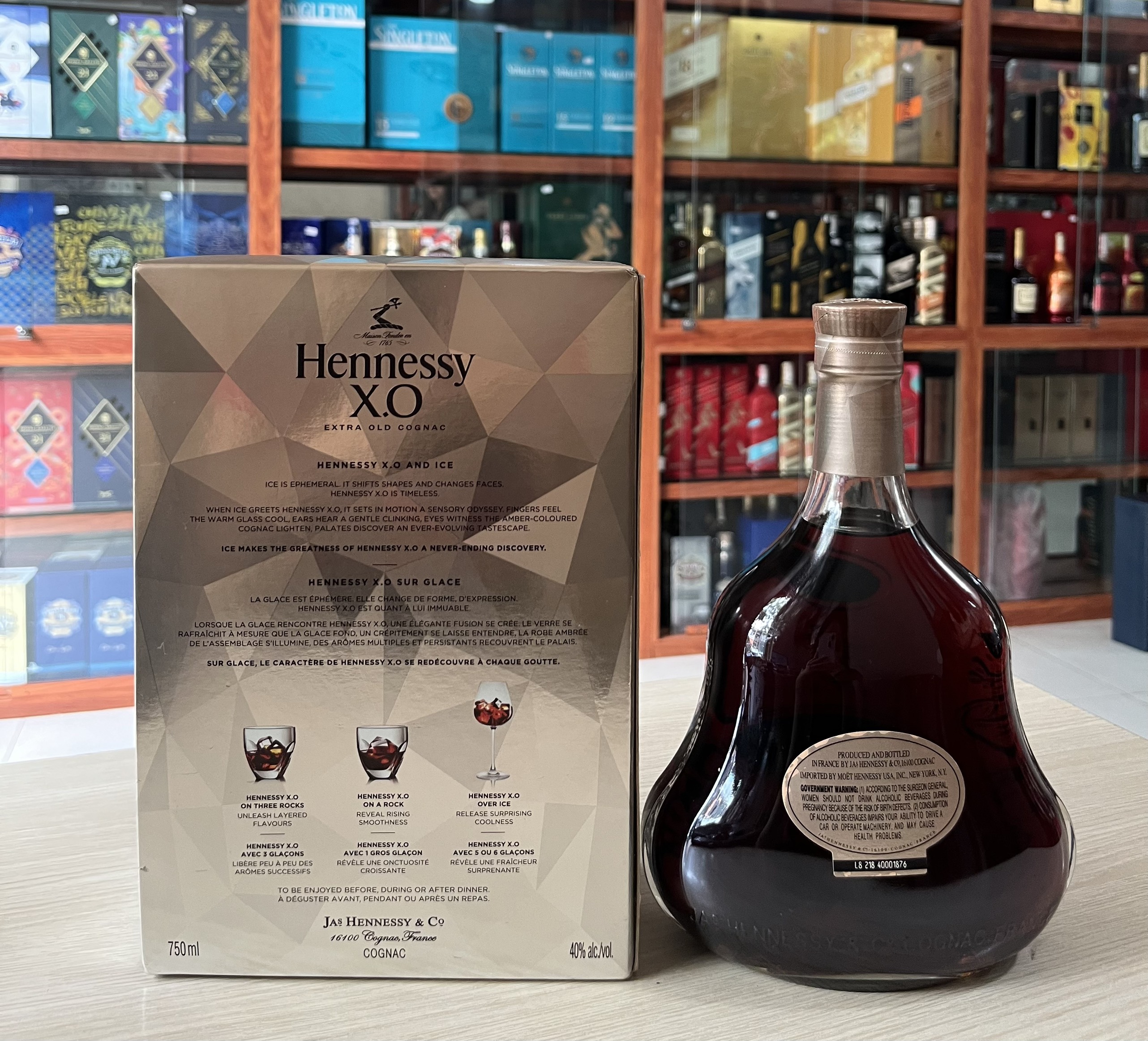Hennessy XO Cognac, là một chai rượu mạnh nổi tiếng thế giới, đây là sự pha trộn của 100 eaux-de-vie (tâm rượu) được chọn lọc một cách chuyên nghiệp, Hennessy XO có một đặc tính đậm đà. Vòm miệng đầy hương trái cây ngọt ngào, bột cacao ngọt đắng, quế ấm và tiêu đen cay.
