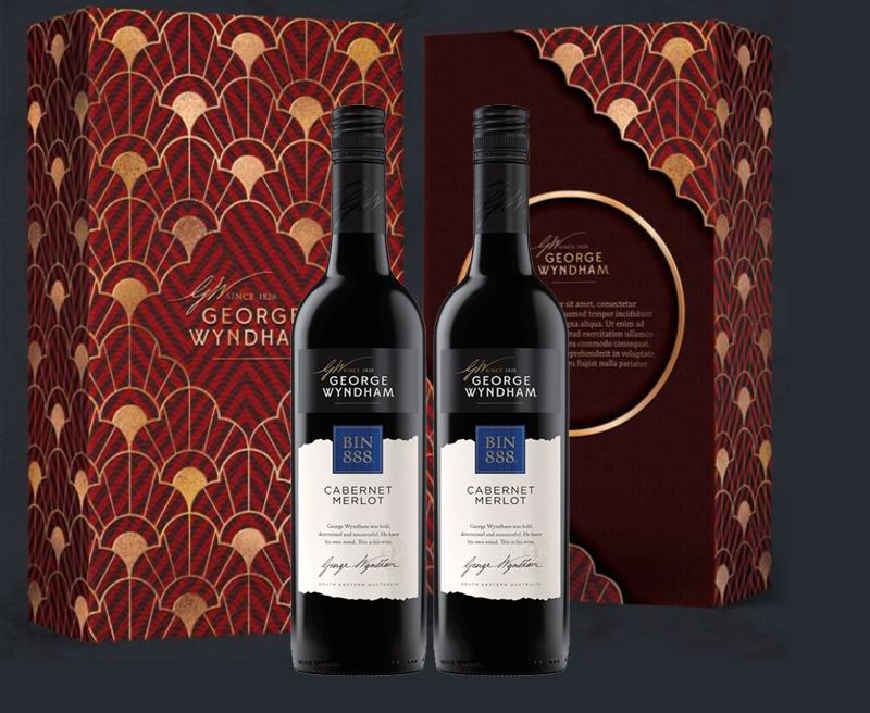 Hộp quà vang Hộp quà Vang Wyndham Bin 888 Cabernet Merlot gồm Hộp giấy đôi + 2 chai vang + túi xách