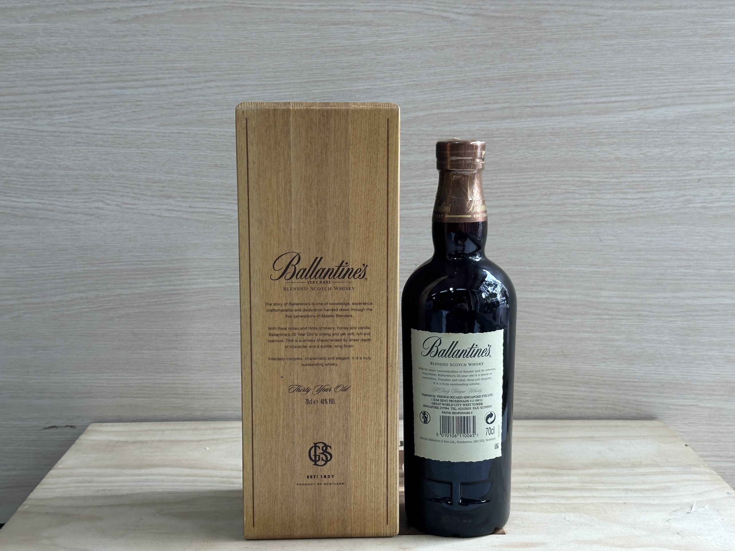 Ballantine's 30 năm là một trong những dòng whisky nổi tiếng và quý hiếm nhất hiện nay, và chỉ được sản xuất với số lượng có hạn. Nguyên liệu sản phẩm được thu hoạch bằng tay, và được ủ trong thùng gỗ sồi suốt 30 năm, nên đây là một trong những dòng rượu whisky đắt nhất thế giới và cực kỳ sang trọng, quý hiếm.