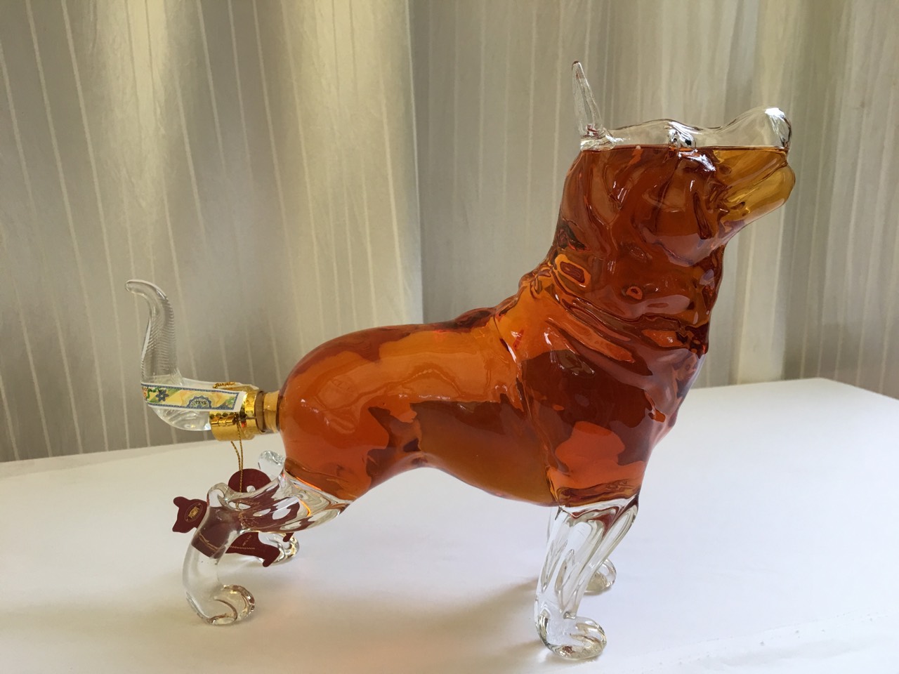 rượu con chó của Nga được thiết kế tinh xảo , và được coi là một tác phẩm nghệ thuật tuyệt vời gữa sự kết hợp tinh túy nghệ thuật chế tác và chất lượng thượng hạng Cognac, kiểu dáng sang trọng với hình chú chó rất đáng yêu, cầu kì , bốn chân chắc khỏe, đôi mắt long lanh có hồn thu hút mọi ánh nhìn, hình dáng oai hùng của chú chó sẽ là một món quà độc đáo trong dịp tết 2018.