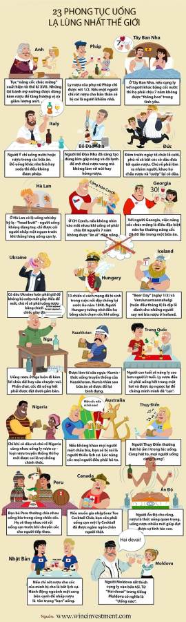 Infographic thú vị dưới đây sẽ giúp bạn hiểu hơn về những tục uống độc đáo ở 23 nước trên thế giới và tránh được những cái nhìn như "người ngoài hành tinh" khi du lịch tới quốc gia này.