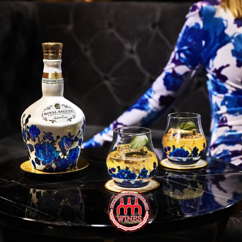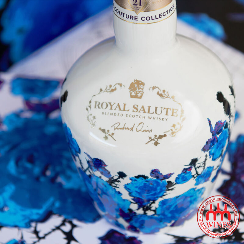 Trong một tuyên bố táo bạo về phong cách và sự sang trọng, sự pha trộn được đặt trong một chiếc cờ hiệu bằng sứ được tái tưởng tượng, có hai màu đen và trắng. Lá cờ được tô điểm bằng họa tiết cánh hoa và gai, do Richard Quinn đích thân thiết kế. Rượu whisky được tạo ra bởi Royal Salute Master Blender Sandy Hyslop, sử dụng Richard Quinn làm nguồn cảm hứng cốt lõi của nó - và cung cấp hương hoa thanh lịch với kết thúc phong phú và hấp dẫn.