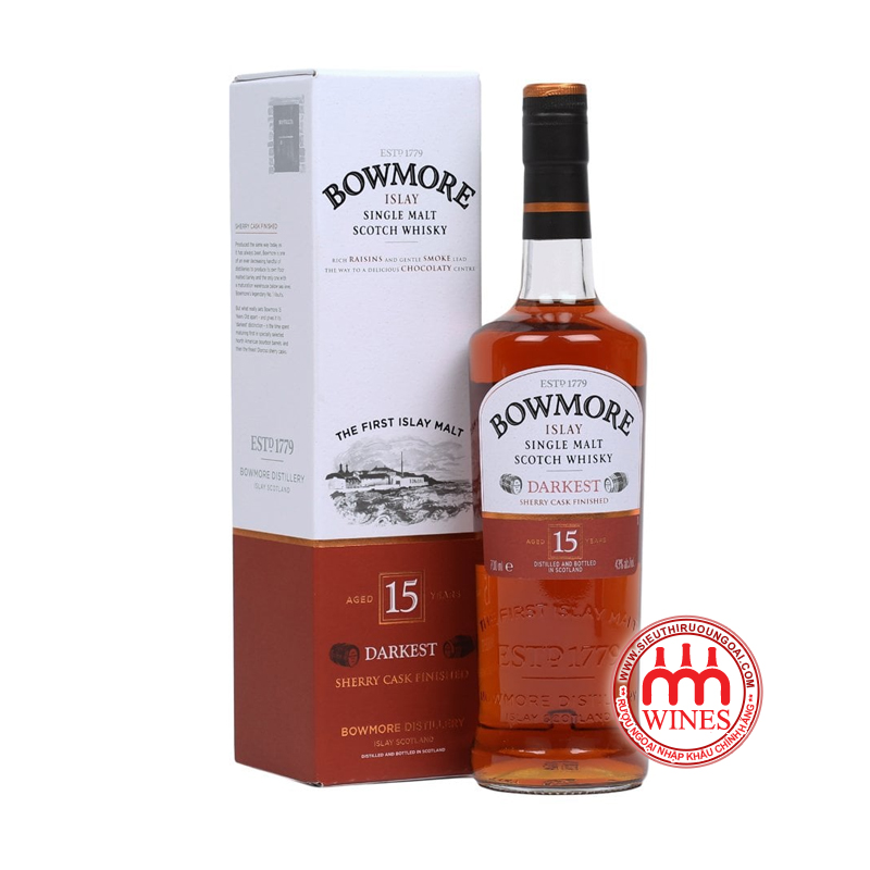 Được sản xuất từ nhà máy rượu Bowmore nổi tiếng, Bowmore 15 năm thật tinh túy nhờ trải qua 3 năm cuối cùng được ủ trong thùng gỗ sồi đã tráng qua rượu Oloroso sherry.”