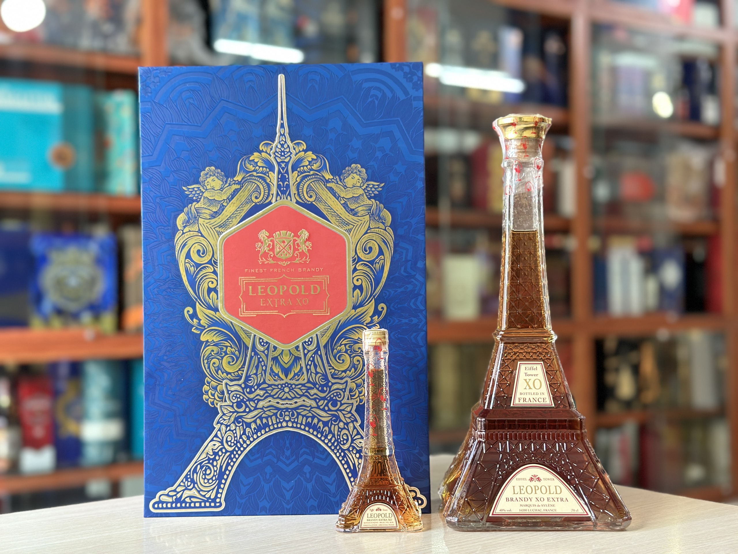 Leopold Extra XO là rượu brandy của Pháp, có dáng chai hình tháp Eiffel – biểu tượng của nước Pháp xinh đẹp. Sản phẩm ngoài dạng chai đơn còn có dạng hộp quà 03 chai gồm: 01 chai dung tích 500ml kèm 02 chai nhỏ dung tích 50ml. Hộp quà được thiết kế sang trọng, thích hợp làm quà tặng vào các dịp lễ tết.