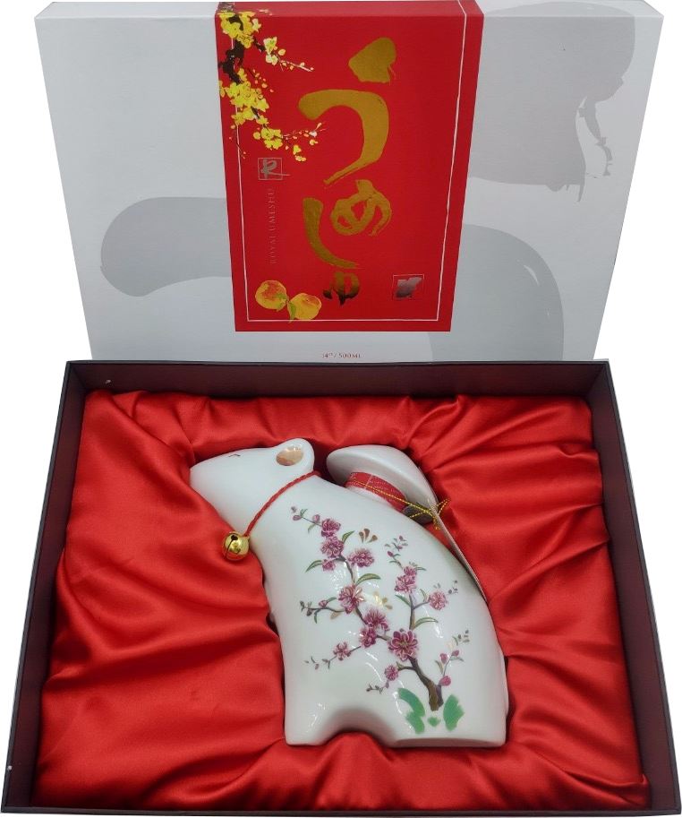 Rượu mơ Nhật bình sứ cao cấp Royal Umeshu là một món quà tặng đẳng cấp, độc đáo cho năm mới Canh Tý 2020. Bình rượu được chế tác tỉ mỉ bởi những nghệ nhân tài hoa, khéo léo trong tạo hình linh vật chuột thanh thoát, cách điệu nghệ thuật nhằm tạo nét xinh xắn, hiền hậu phù hợp với không khí tết. Bình sứ Royal có họa tiết cành mai, cành đào trên bình rượu càng tăng thêm ý nghĩa về mùa tết của 2 miền Nam Bắc.