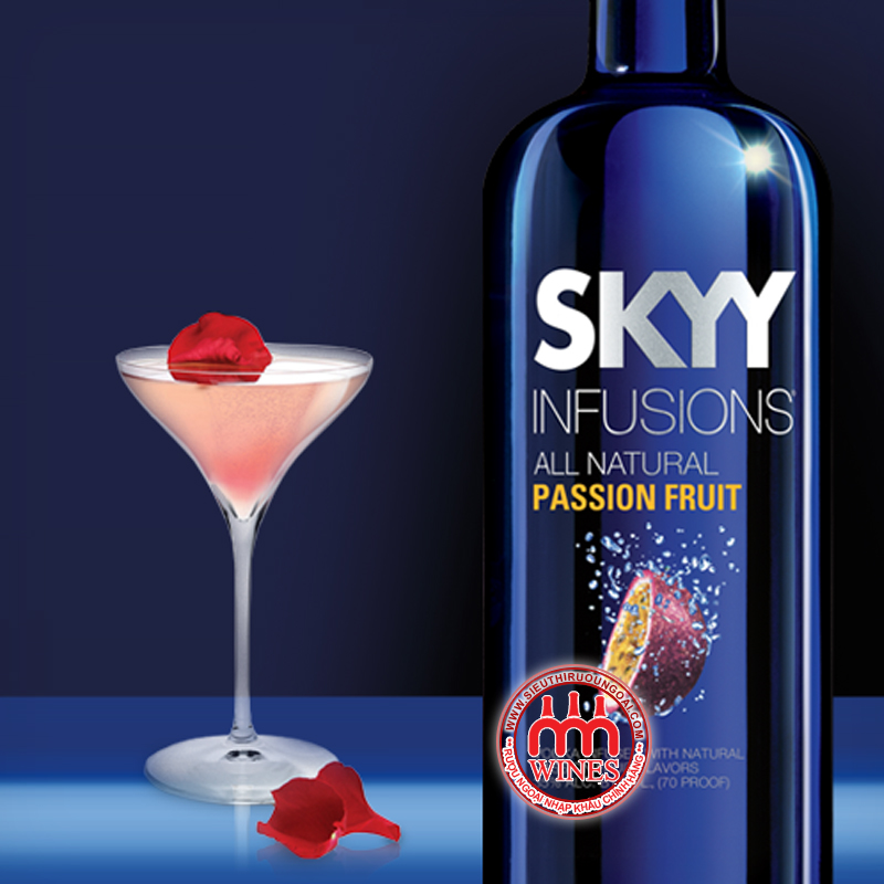 Skyy Infusions Passion Fruit là sự kết hợp giữa rượu vodka Mỹ được chưng cất bốn lần và ba lọc tuyệt vời của Skyy với hương vị tự nhiên của trái chanh dây kỳ diệu. Làm sống động tất cả các hương vị của vùng nhiệt đới với cấu hình kỳ lạ của nó để tiếp thêm sinh lực và phục hồi các giác quan của bạn. Mang đến cho vòm miệng một hành trình năng động, bắt đầu ngọt ngào và kết thúc với nốt hương táo bạo, đặc trưng của Chanh dây. Để công nhận hương vị nổi bật của nó,
