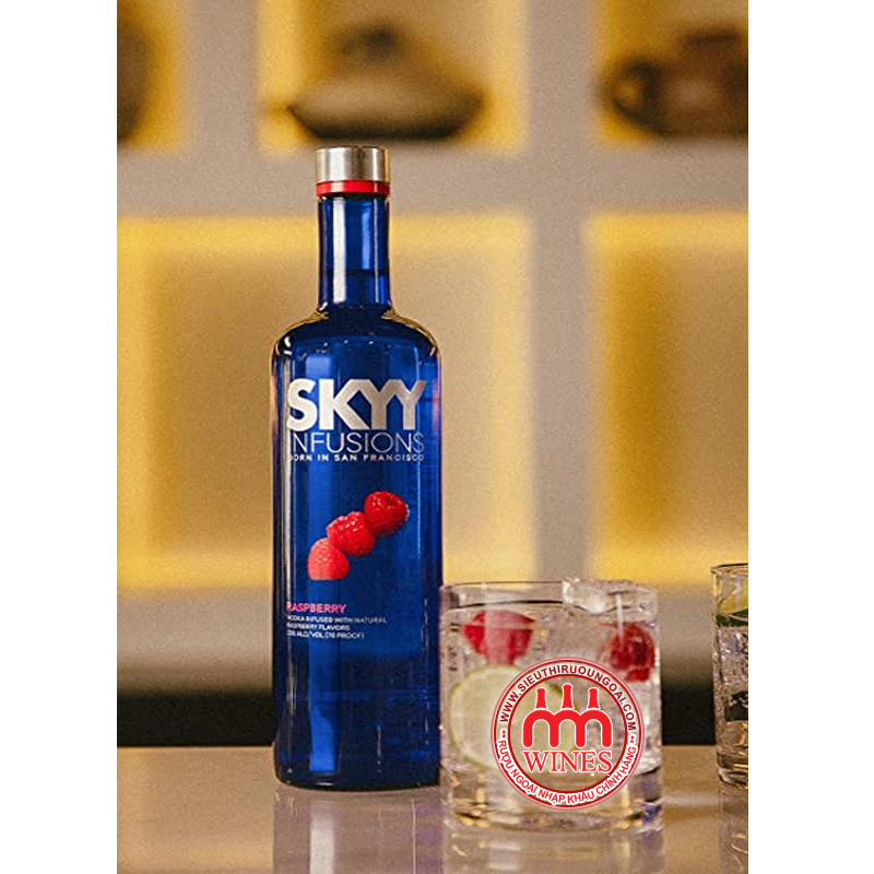 Skyy Infusions Raspberry kết hợp rượu vodka nhẹ với hương vị ngọt ngào của quả mâm xôi. Sau khi rượu vodka được chưng cất bốn lần và ba lần lọc, hương thơm tự nhiên 100% được truyền vào bằng một phương pháp đặc biệt.