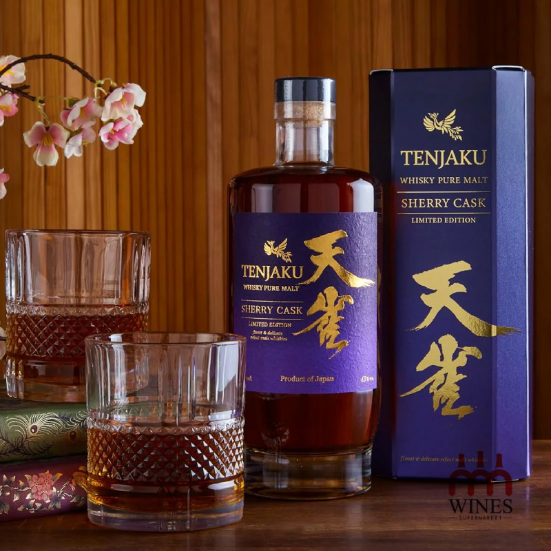 Một bản giao hưởng của thời gian. Tenjaku Sherry Cask Finished Pure Malt Japanese Whisky là sự pha trộn của 15% whisky mạch nha 3 năm tuổi, 15% whisky 5 năm tuổi, 60% whisky 8 năm tuổi và 10% whisky mạch nha 12 năm tuổi, bổ sung cho nhau một cách hài hòa, tạo nên một giai điệu nhẹ nhàng. Hương vị whisky đặc trưng bởi vị ngọt của sherry, nhờ quá trình ủ hỗn hợp cuối cùng trong thùng gỗ sồi sherry. 100% lúa mạch mạch nha được sử dụng trong quá trình sản xuất. Rượu được chưng cất bằng một trong những nguồn nước sạch nhất Nhật Bản, từ dãy núi Misaka, thuộc lưu vực Fuji.