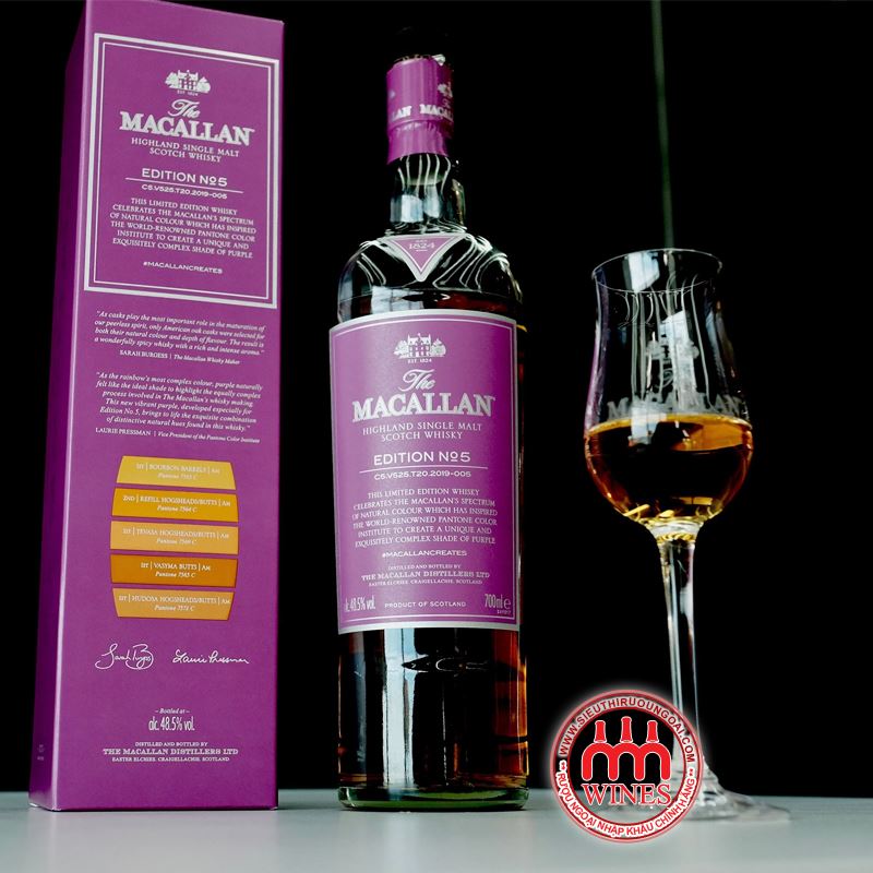 Macallan Edition No.5 là sự kết hợp giữa kỹ thuật sản xuất whisky bậc thầy cùng chuyên môn và hiểu biết về màu sắc, loại rượu Singlemalt này tôn vinh cả sự trung thành với màu sắc tự nhiên của Macallan cũng như sự phức tạp của quá trình làm whisky.