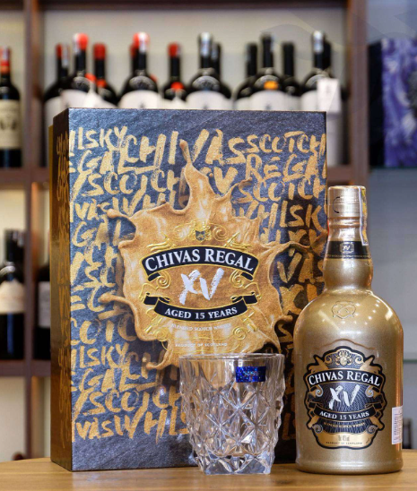 Trong đó, những chai rượu Chivas 15 hay còn được gọi là Chivas XV - một dòng Whisky nổi tiếng của nhà Chivas Regal ở Scotland có thiết kế sang trọng, ấn tượng, hương vị nồng đượm thơm ngon được rất nhiều người yêu thích. Người mua có thể lựa chọn tặng một chai đơn, một cặp hoặc tặng kèm cùng những chiếc ly uống rượu chuyên dụng. Tất cả được xếp ngay ngắn trong chiếc hộp sang trọng, đóng gói cẩn thận.