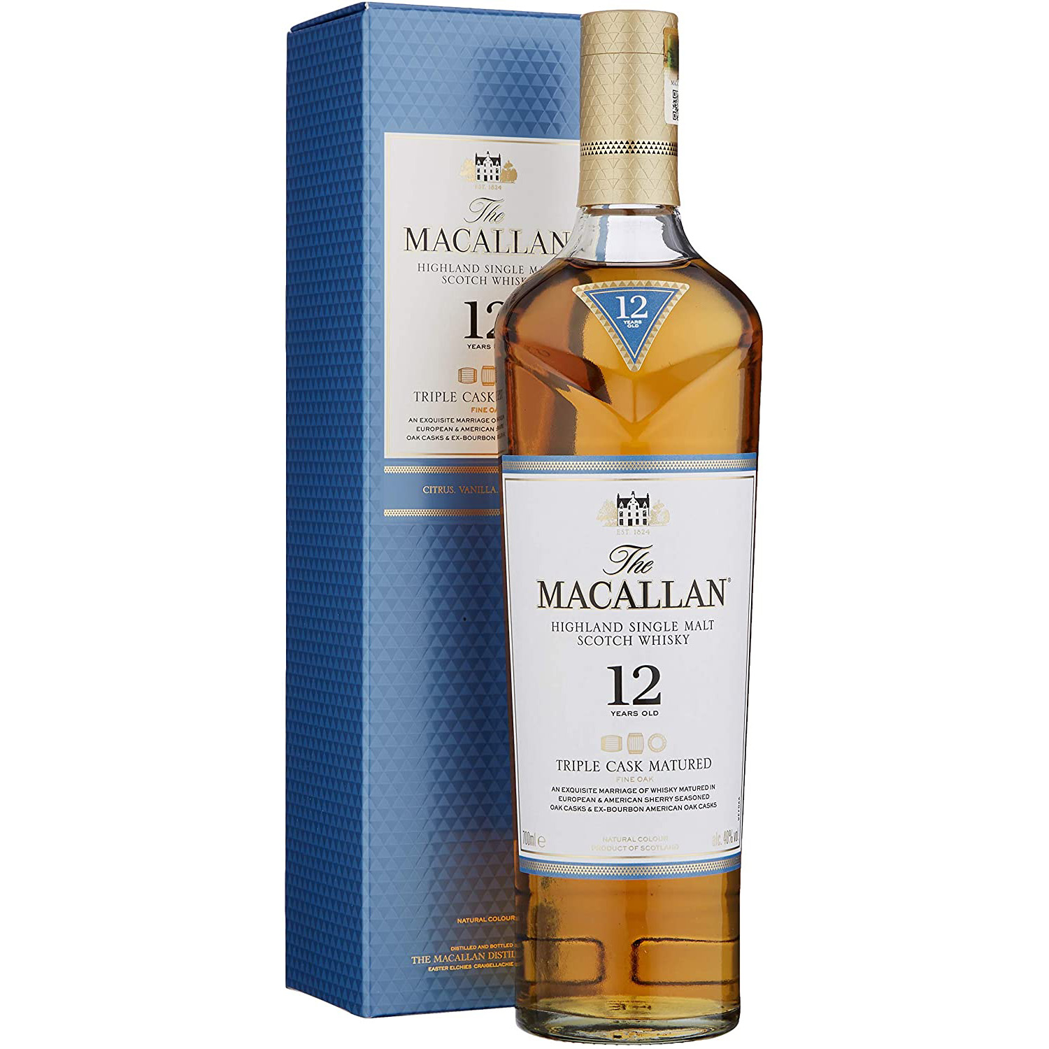 - Macallan 12 Triple Oak: Có màu vàng rơm đậm được ủ trong 2 thùng gỗ sồi, đó là gỗ sồi Mỹ tẩm rượu Sherry và thùng gỗ sồi Bourbon cũ của Mỹ. Rượu có hương của vỏ cam, dưa đỏ, ngọt của vani và một chút vị của hạt nhục đậu khấu. Hiện giá Macallan 15 Fine Oak dao động khoảng từ 4.900.000 - 5.500.000 VNĐ