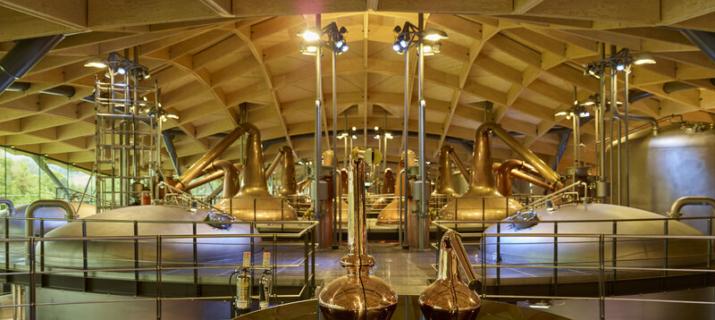 Cột chưng cất rượu bằng đồng bên trong nhà máy sản xuất rượu Macallan