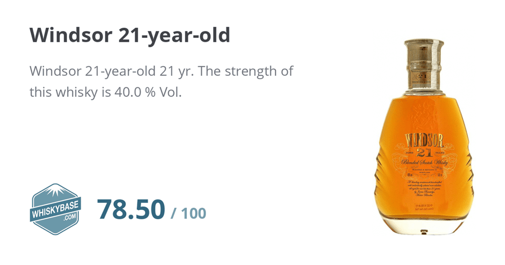 The Windsor blend được ra mắt vào năm 1996 và biểu hiện được bán rộng rãi nhất của nó là từ 12 tuổi., 17 tuổi, 21 tuổi. Điều này đặt nó chắc chắn và được pha chế Blend Scotch tinh tế cao cấp, được củng cố bởi chai trên đỉnh vàng đặc biệt của Windsor.